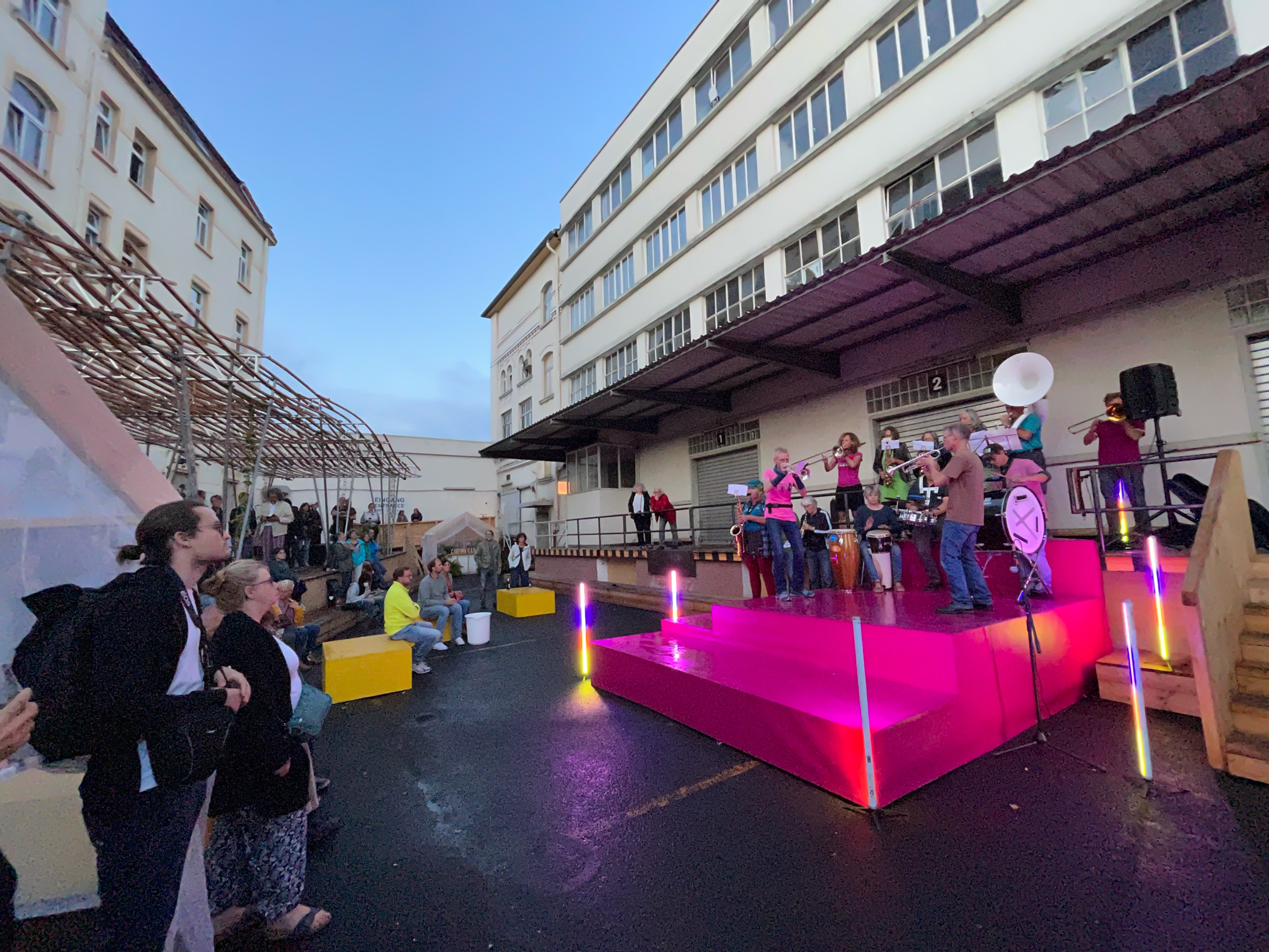 Das KontorhausKollektiv KoKo + Friends beim Konzert der Boomhorns und Blech&Schwefel am Documenta Standort Hafenareal